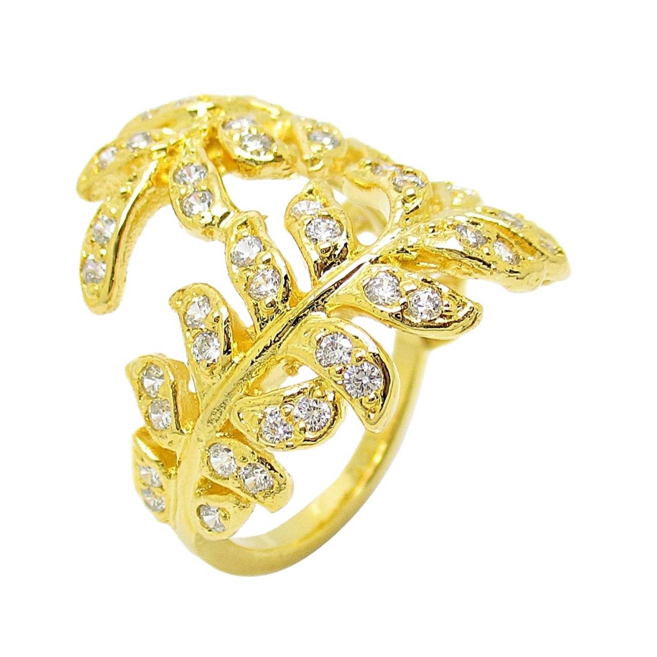 แหวนทรงใบไม้ที่เปล่งประกายพลอยเรียงซ้อนกันราวกับหยดน้ำบนกลีบใบในยามเช้า รายละเอียดของใบไม้ถูกตีความผ่านเส้นทองโค้งรับกันอย่างกลมกลืน สื่อถึงธรรมชาติที่อ่อนช้อยแต่มั่นคง ความประณีตในการวางเม็ดพลอยแต่ละเม็ดแสดงถึงความใส่ใจในทุกมิติของงานฝีมือ